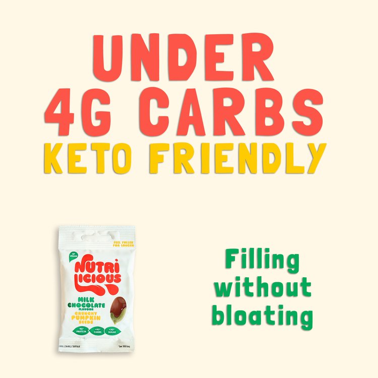 Pumpkin seeds coated with smooth oat milk chocolate. Low in carbs and sugar, high in plant protein to keep you satisfied. Made from responsibly sourced ingredients, supporting ethical and charitable efforts.