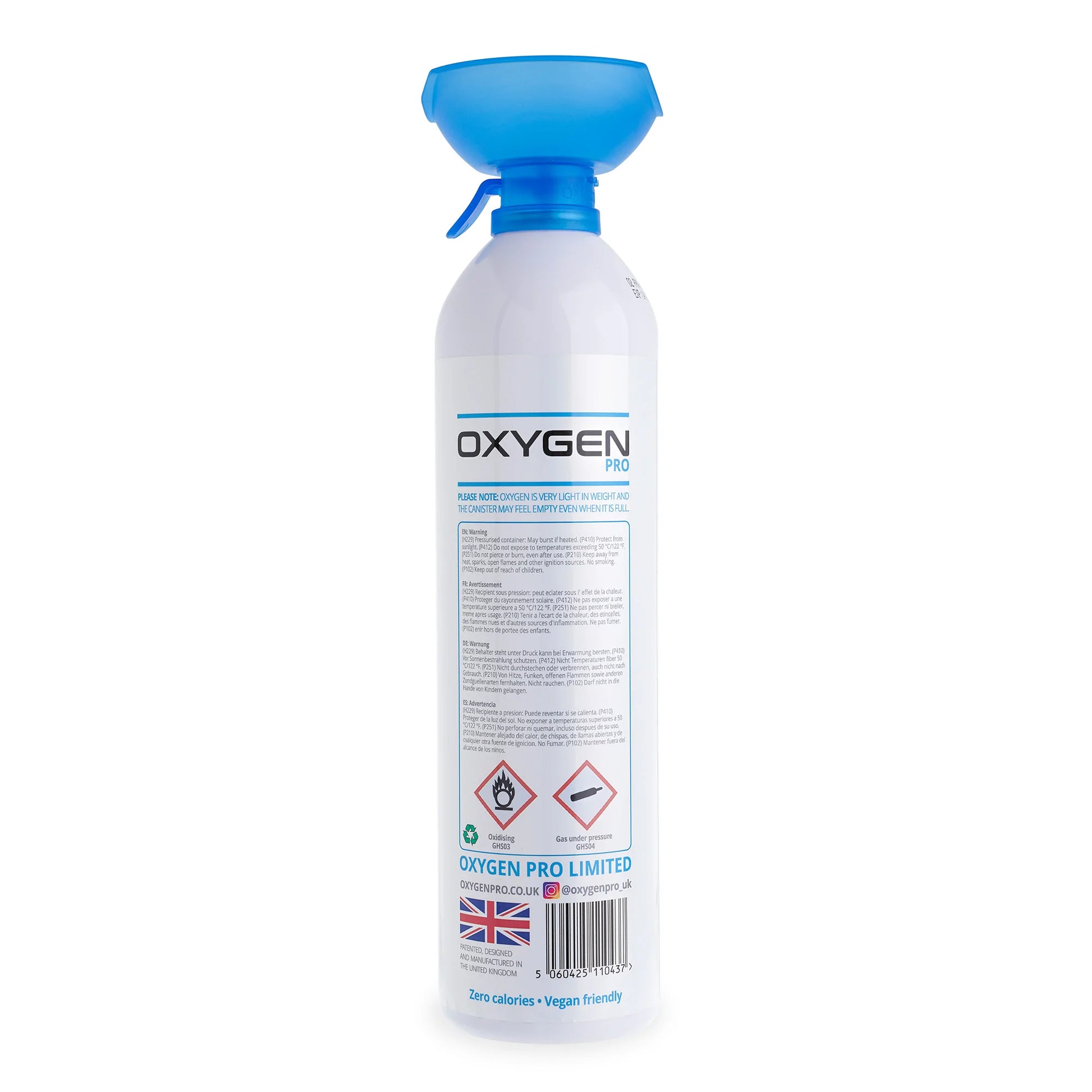 Contains 20 litres of oxygen in a 1000 ml canister. (Dimensions: (per canister) Diameter 73mm, Height 263mm)