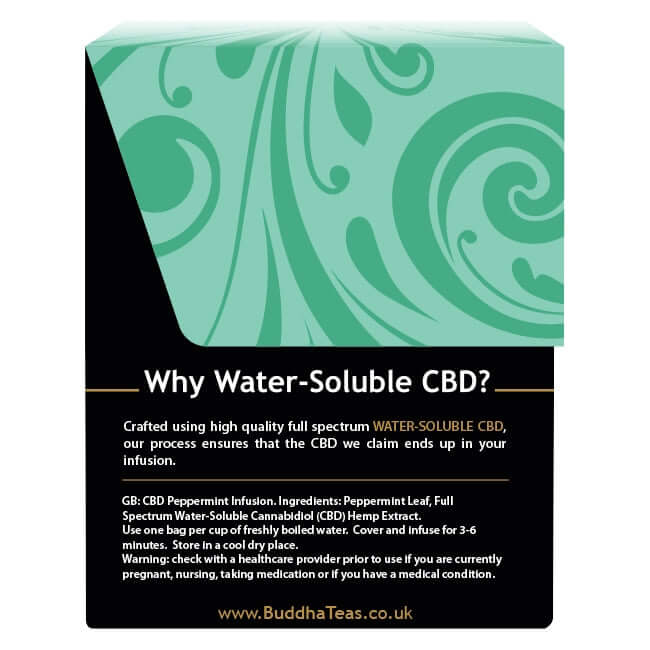 Our CBD Peppermint Infusion combines high quality peppermint with 5 mg of water soluble CBD in each tea bag. Known to support digestion and deliver a fresh, clean taste, this tea offers a soothing, THC free experience perfect for any time you want a calming, refreshing cup.