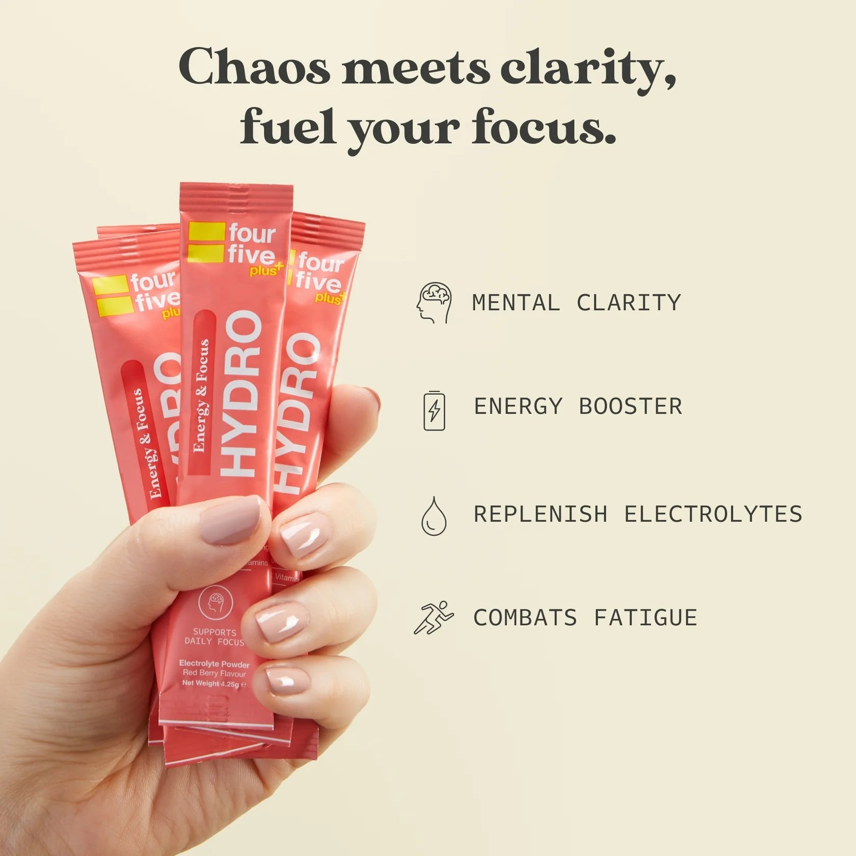 Our Energy & Focus hydration powder combines 5 key electrolytes with a potent Vitamin B complex and natural active compounds to provide the ultimate brain and body boost. Whether you’re preparing for a big meeting or suffering from a night of poor sleep, this blend will have you energised and on top of your game.